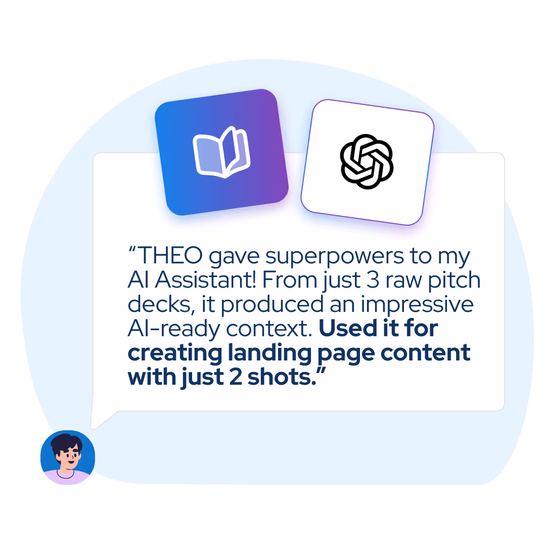 THEO ensures every team member's AI tools start with identical comprehensive client context, eliminating the variation that comes from different people explaining client background differently. Your quality standards remain yoursāTHEO just ensures consistent client intelligence foundation for every AI conversation.